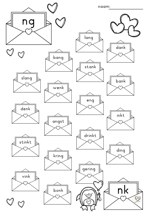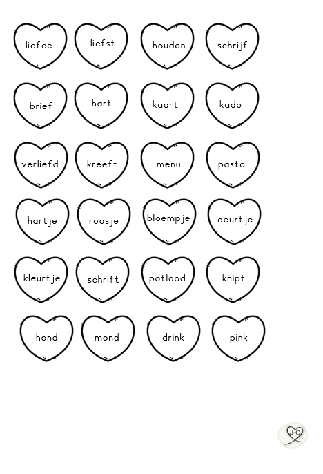 Je kunt de hartjes laten opplakken, maar je kunt de woorden ook in de hartjes laten schrijven.