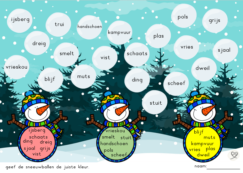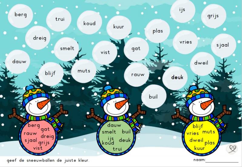 Welk woord hoort in de sneeuwpop?