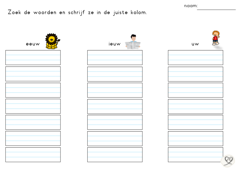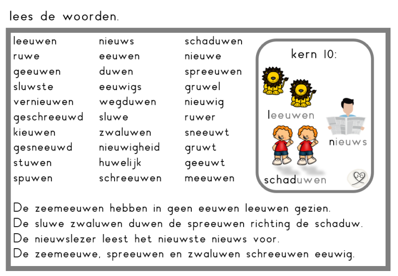 Werkblad woorden als: leeuwen, nieuws en schaduwen