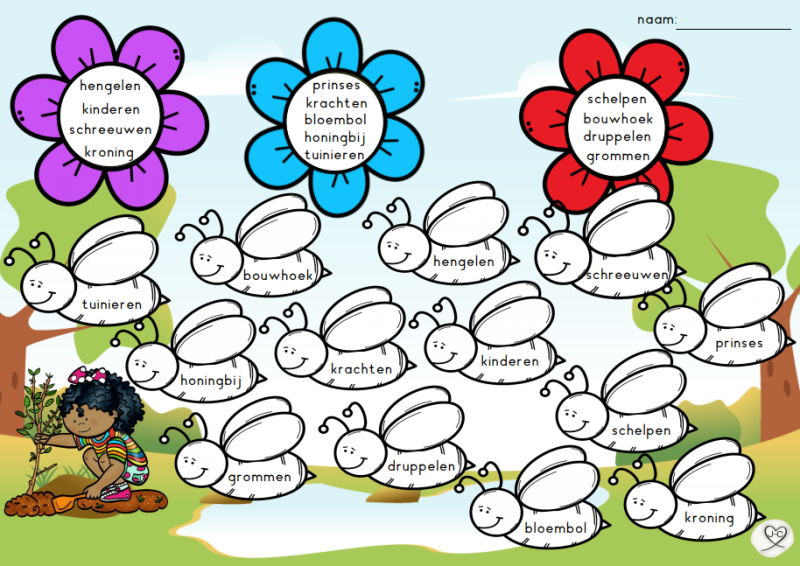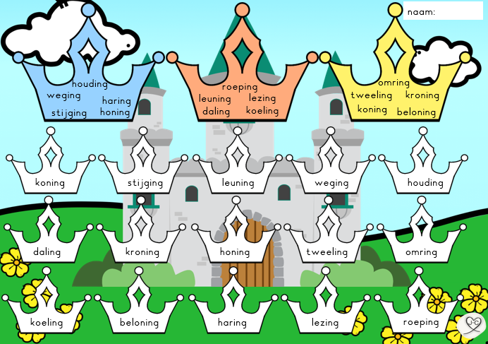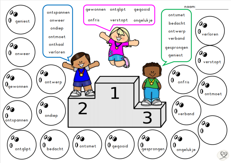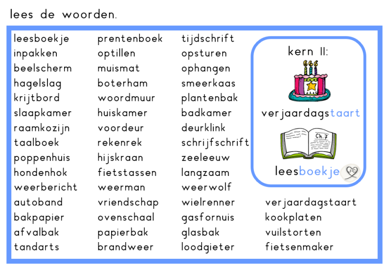 het eerste blad is in te zetten wanneer de woorden lange woorden zijn aangeboden, het tweede blad wanneer alles is aangeboden.