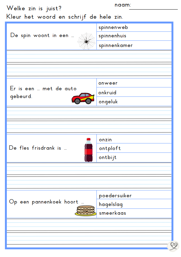 Wanneer de zin klopt, tekenen ze wat ze gelezen hebben, wanneer het niet klopt laten ze het hokje leeg.