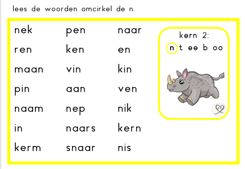 Laat de kinderen rollen met een dobbelsteen en een woordje kiezen uit de kolom. Dit woordje lezen zij en mogen zij daarna inkleuren. Wanneer ze een hele rij (of de hele kaart) vol hebben, hebben ze bingo. Ik deel dan vaak een sticker uit. De kinderen zijn zo spelenderwijs bezig met lezen.