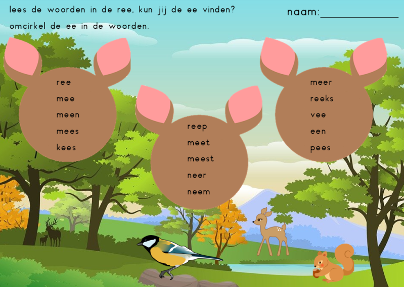 Hieronder vind je verschillende opdrachten rondom de e en de ee.