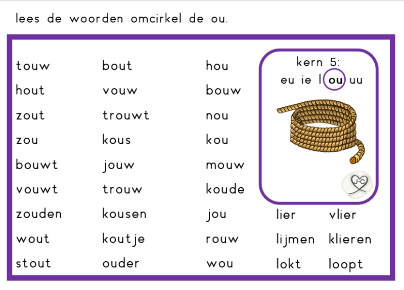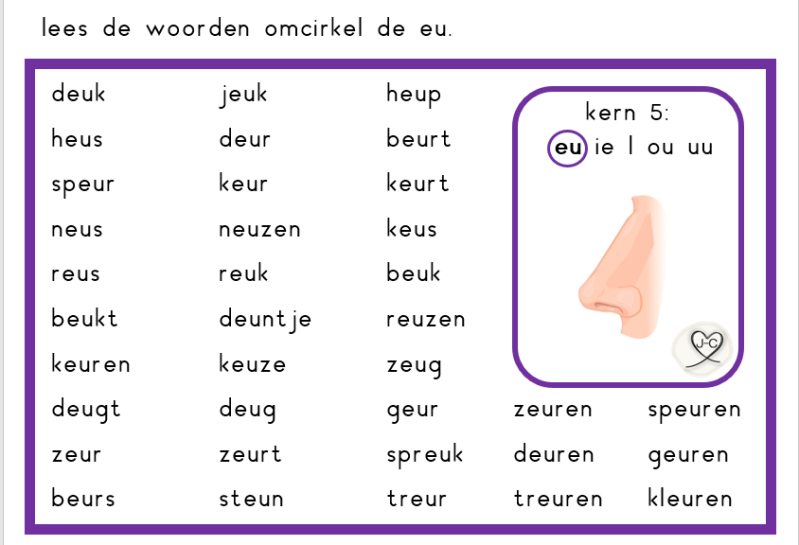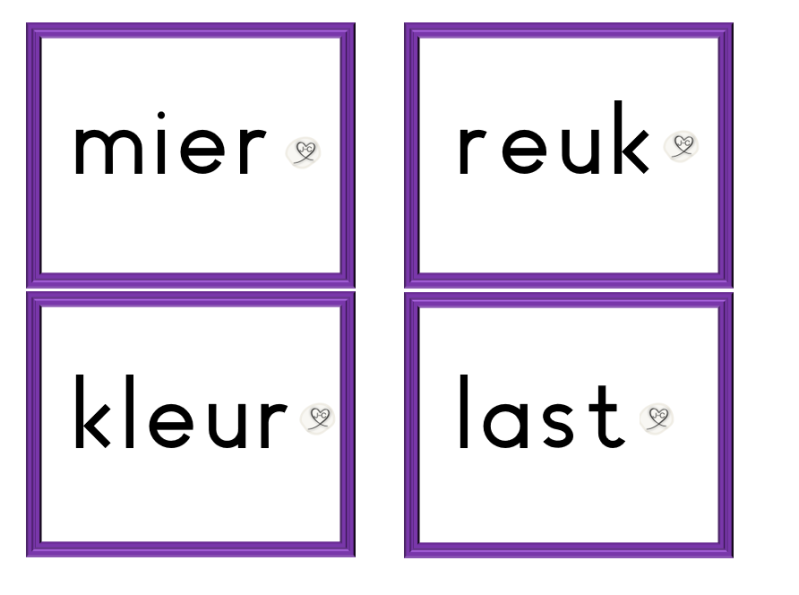 Bij het visuele werkblad is het leuk om de woordjes op een gekleurd blad te printen.