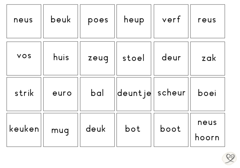Bij dit spel geef je de kinderen een vel met woordjes.