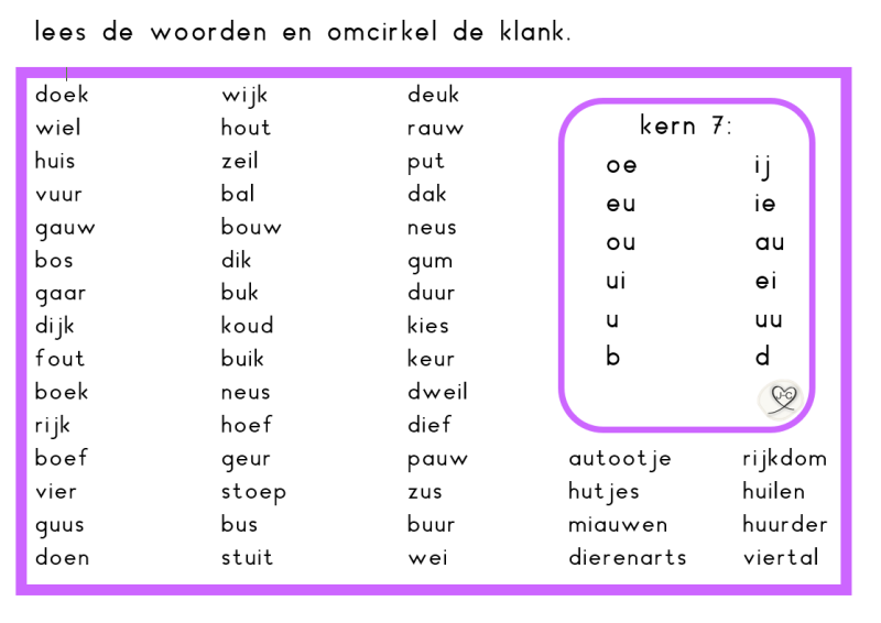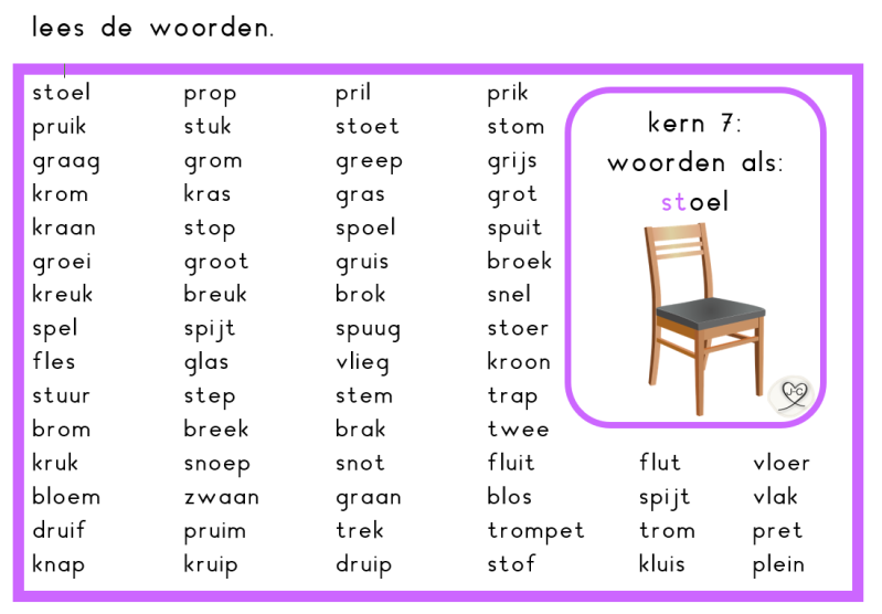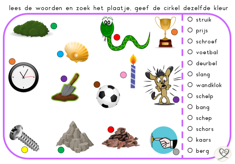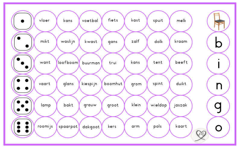 Laat de kinderen rollen met een dobbelsteen en een woordje kiezen uit de kolom. Dit woordje lezen zij en mogen zij daarna inkleuren. Wanneer ze een hele rij (of de hele kaart) vol hebben, hebben ze bingo. Ik deel dan vaak een sticker uit. De kinderen zijn zo spelenderwijs bezig met lezen.