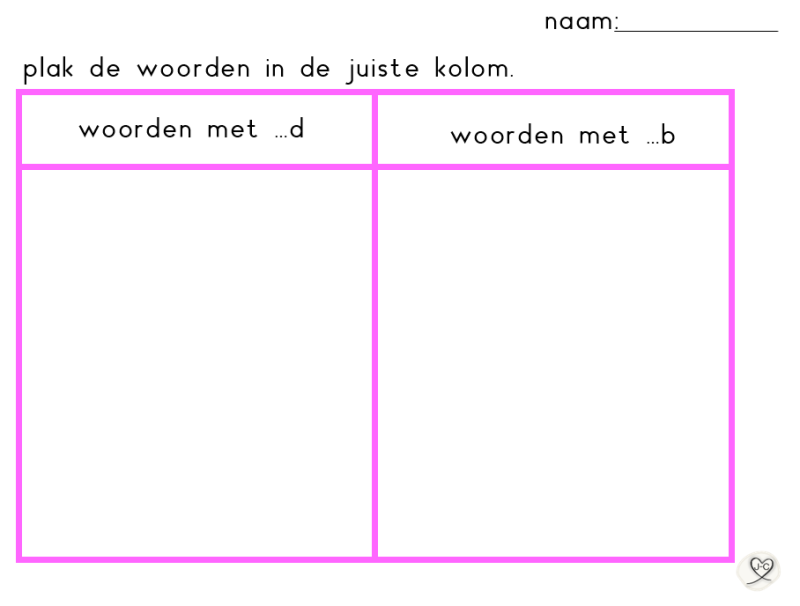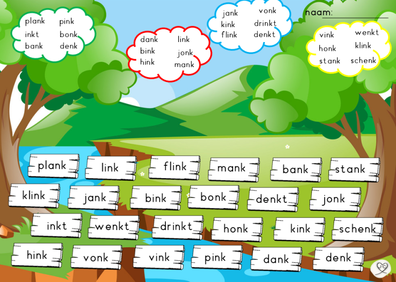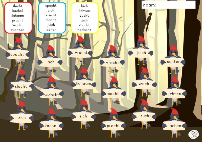 het eerste blad is in te zetten wanneer de -ch woorden zijn aangeboden, het tweede blad wanneer alles is aangeboden.